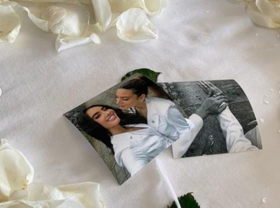 Σε μία από τις κοινές τους φωτογραφίες, οι δυο τους ανταλλάσσουν ένα φιλί, σε άλλη εικόνα δείχνει το κρεβάτι τους που είναι γεμάτο μπαλόνια, όπως επίσης και την Μαριάνα να κρατά ένα όμορφο λουλούδι.