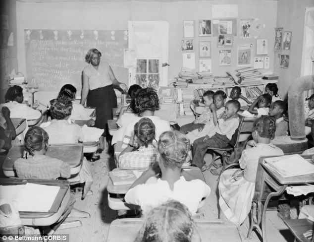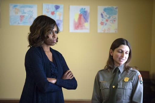 Η φωτογραφία τραβήχτηκε όταν επισκέφθηκε η Μισέλ Ομπάμα το Brown v. Board of Education National Historic Site στο Κάνσας την παραμονή της επετείου, στις 16 Μαΐου.