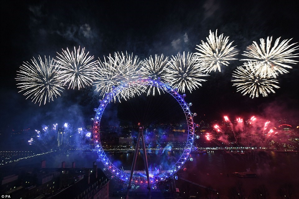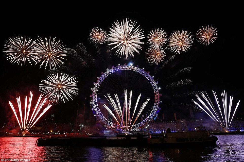 Περισσότεροι από 250.000 κάτοικοι και επισκέπτες κατέκλυσαν τους δρόμους του γιορτινού Λονδίνου για να απολαύσουν την έλευση του νέου έτους. Όλα τα διάσημα αξιοθέατα της βρετανικής πρωτεύουσας “βούλιαξαν” από τον κόσμο που παρακολουθούσε εκστασιασμένος την πλημμυρίδα πυροτεχνημάτων στον λονδρέζικο ουρανό σε ένα σόου που κράτησε 12 ολόκληρα λεπτά.