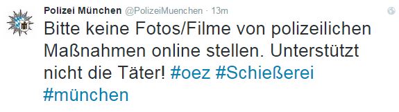 Η αστυνομία στο Μόναχο καλεί τους πολίτες να μην ανεβάζουν στο διαδίκτυο βίντεο και φωτογραφίες με τις δράσεις της αστυνομίας μετά την επίθεση, προκειμένου να μην διευκολύνουν τους δράστες.