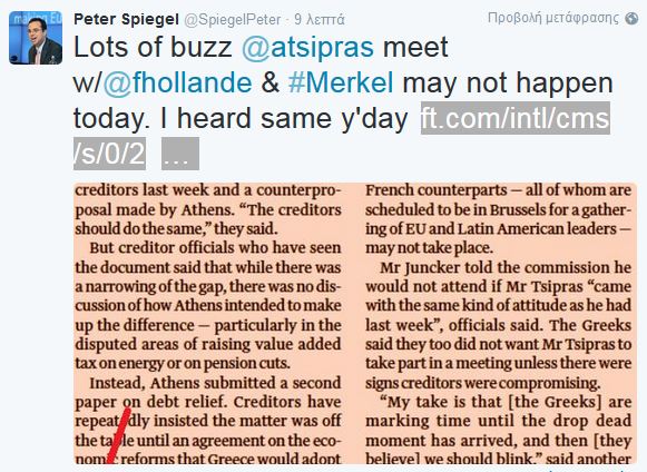 Το αναπαράγουν κι άλλοι δημοσιογράφοι στο εξωτερικό. Ο Πίτερ Σπίγκελ αναρωτιέται για τις φήμες που κυκλοφορούν από χθες ότι μπορεί να μη γίνει η συνάντηση της τριάδας.