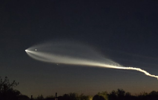 SpaceX’s Falcon 9 rocket left a dramatic cloud that filled the sky over Southern California on Monday evening, taking the shape of a jellyfish with a long tail before slowly dissipating in the night. pic.twitter.com/K4lQz6UrSH