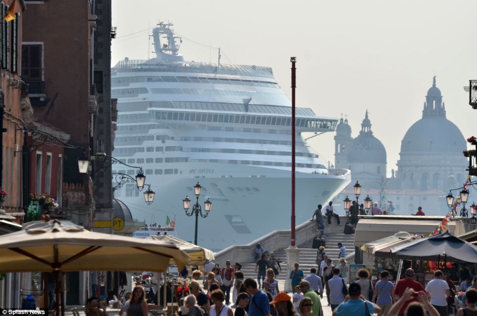 Εξαγριωμένοι διαδηλωτές ζητούν την άμεση απομάκρυνση του κρουαζιερόπλοιου, το οποίο μεταφέρει 4.500 άτομα και είναι το μεγαλύτερο που έχει “δέσει” ποτέ στο λιμάνι της Βενετίας…