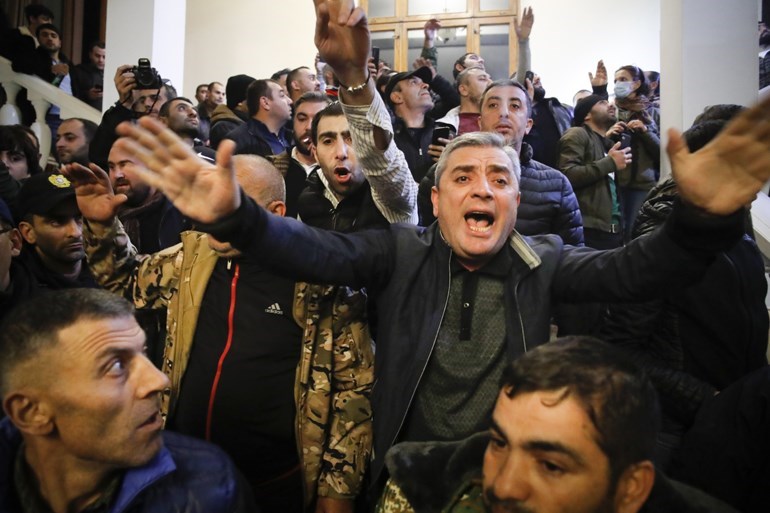 Πλήθος έξαλλων διαδηλωτών εισέβαλε σήμερα στην έδρα του κοινοβουλίου της Αρμενίας στο Γερεβάν, καταγγέλλοντας τη συμφωνία για τον τερματισμό των εχθροπραξιών στο Ναγκόρνο Καραμπάχ που υπεγράφη με το Αζερμπαϊτζάν και τη Ρωσία και μοιάζει να επικυρώνει τη στρατιωτική επικράτηση των αζερικών δυνάμεων.