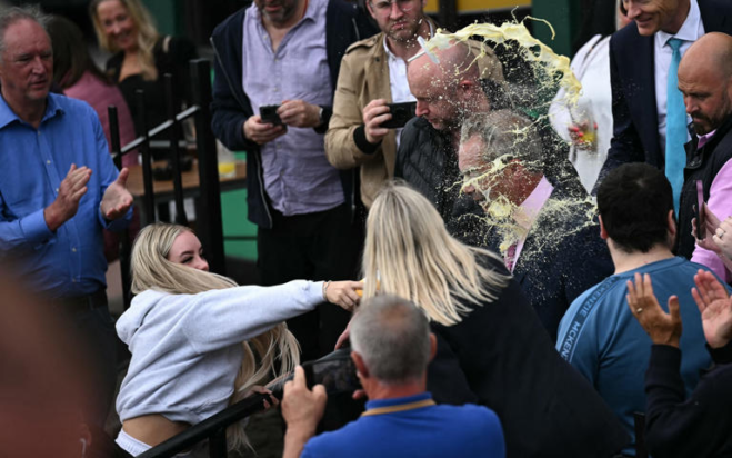 Αντιμέτωπος με ένα πρωτοφανές περιστατικό βρέθηκε ο Νάιτζελ Φάρατζ ύστερα από την παρουσίαση της βουλευτικής του υποψηφιότητας στην προκυμαία του Κλάκτον στη νότια Αγγλία, όταν μια γυναίκα τον πλησίασε, πετώντας του ένα μιλκσέικ.