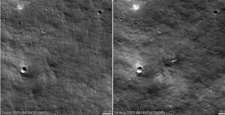 «Ο νέος κρατήρας έχει διάμετρο περίπου 10 μέτρα», ανακοίνωσε η NASA. «Δεδομένου ότι αυτός ο νέος κρατήρας βρίσκεται κοντά στο εκτιμώμενο σημείο πρόσκρουσης του Luna-25, η ομάδα του LRO καταλήγει στο συμπέρασμα ότι είναι πιθανό να προέρχεται από την εν λόγω αποστολή και όχι από φυσικό παράγοντα πρόσκρουσης», αναφέρει η ανακοίνωση.