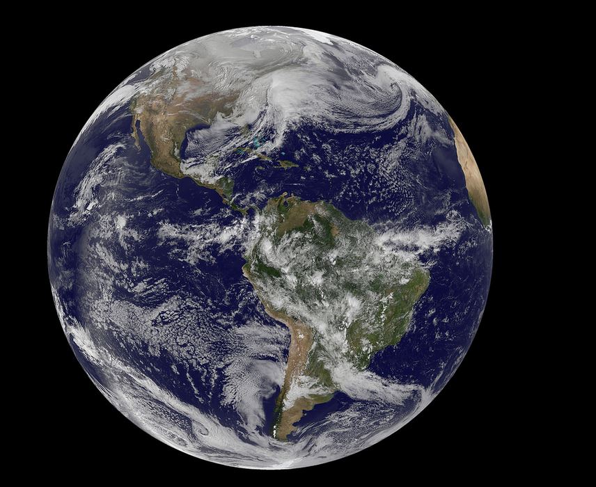 Η φωτογραφία που δημοσίευσε η NASA απεικονίζει την κατάσταση που επικρατεί επάνω από τη μέση του Ατλαντικού μέχρι τη Νέα Αγγλία και τραβήχτηκε από δορυφόρο.
