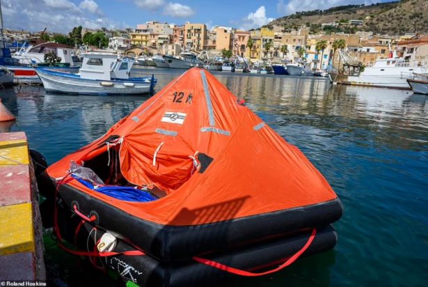 Η σωσίβια σχεδία από το υπερπολυτελές σούπερ γιοτ Bayesian, που βυθίστηκε στην Σικελία, προσελκύει τα βλέμματα έξω από το Λιμεναρχείο,του Porticello κοντά στο Παλέρμο, καθώς οι ομάδες κατάδυσης αναζητούν απεγνωσμένα έξι άτομα που εξακολουθούν να αγνοούνται μετά την «πρωτοφανή» καταστροφή το πρωί της Δευτέρας, που οι ειδικοί δεν αποκλείουν να οφείλεται και στο τεράστιο κατάρτι του σκάφους.