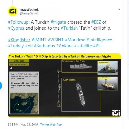 Στο δημοσίευμα αναφέρεται ότι σε προηγούμενες δορυφορικές φωτογραφίες που είχαν αναρτηθεί στον ίδιο λογαριασμό στο Twitter στις 16 Ιουνίου διακρινόταν ο Πορθητής και δίπλα του να πλέει η πολεμική φρεγάτα Barbaros και στις 20 Μαΐου το τουρκικό γεωτρύπανο το οποίο συνοδευόταν από τη φρεγάτα MEKO 200TN.