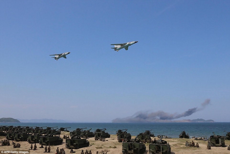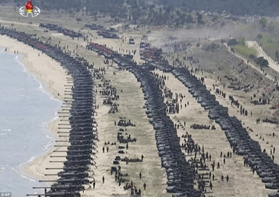 Φωτογραφίες από τη στρατιωτική επίδειξη για την 85η επέτειο από την ίδρυση του στρατού της Βόρειας Κορέας, ήρθαν στη δημοσιότητα.Η στρατιωτική επίδειξη έγινε φυσικά υπό το βλέμμα του Κιμ Γιονγκ Ουν, που έφτασε με ανοιχτή Mercedes, συνοδευόμενος από τους κορυφαίους στρατηγούς του.Περισσότερα από 300 άρματα παρατάχθηκαν στα παράλια, κοντά στην ανατολική πόλη Γουονσάν.Σύμφωνα με την κρατική εφημερίδα Rodong Sinmun, η οποία δημοσίευσε τις φωτογραφίες η άσκηση περιελάμβανε και υποβρύχια, τα οποία εκτόξευσαν τορπίλες προς «εχθρούς», αλλά και αεροσκάφη που έριξαν βόμβες. Την ίδια στιγμή, ο αμερικανικός στρατός έχει αρχίσει να μεταφέρει στη Νότια Κορέα τμήματα του αντιπυραυλικού συστήματος THAAD.
