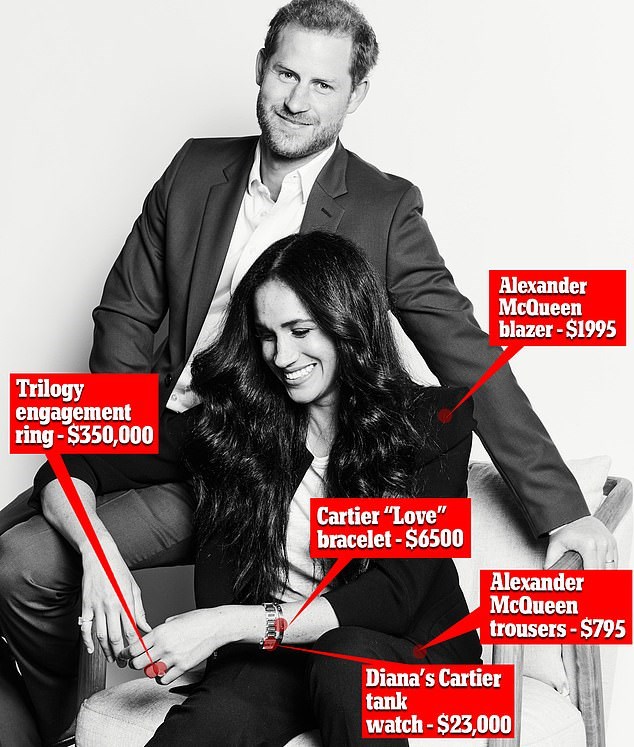 Η Μέγκαν Μαρκλ εμφανίστηκε σε μια νέα επίσημη φωτογραφία με τον πρίγκιπα Χάρι. Η Μαρκλ επέλεξε να φορέσει ένα οικογενειακό κειμήλιο που κάποτε ανήκε στην πριγκίπισσα Νταϊάνα και το ίδιο κοστούμι Alexander McQueen που φορούσε στην πρώτη της βραδινή υποχρέωση ως μέλος της βασιλικής οικογένειας. Η νέα φωτογραφία του Δούκα και της Δούκισσας του Σάσεξ κυκλοφόρησε την Παρασκευή για να συμπέσει με την είδηση ότι το ζευγάρι θα φιλοξενήσει μια ειδική έκδοση των συνομιλιών TIME100 για την κατάσταση της κοινής ψηφιακής εμπειρίας. Η ασπρόμαυρη εικόνα δείχνει τη λαμπερή μητέρα του Άρτσι μαζί με τον σύζυγό της, ο οποίος έχει το χέρι πίσω της, προστατευτικά, ενώ εκείνη γελάει. Το ζευγάρι φοράει ταιριαστά ρούχα, με τον Χάρι να επιλέγει να μην φορέσει γραβάτα και να αφήσει το επάνω κουμπί ανοιχτό, υιοθετώντας ένα casual στυλ. Η 39χρονη Μέγκαν, φοράει το αγαπημένο της κοστούμι που κοστίζει σχεδόν 3.000 δολάρια συνολικά, ενώ τα κοσμήματά της αγγίζουν… αστρονομικά ποσά. Το δαχτυλίδι των αρραβώνων της εκτιμάται στα 350.000 δολάρια, ενώ το ρολόι Cartier της Νταϊάνας εκτιμάται στα 23.000 δολάρια.