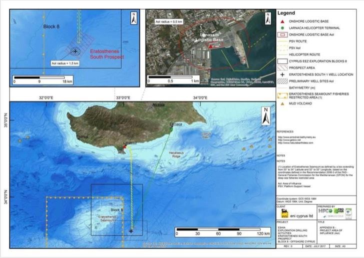 Συγκεκριμένα, το Γιαβούζ ξεκίνησε γεώτρηση, στον ήδη αδειοδοτημένο από την Κυπριακή Δημοκρατία, κοίτασμα «Ερατοσθένης Νότιο 1», για τον οποίο η ΕΝΙ έχει προχωρήσει σε όλες τις έρευνες και έχει εξασφαλίσει τις άδειες από την Κυπριακή Δημοκρατία στα τέλη του 2018. Είναι ένας από τους προγραμματισμένους στόχους γεωτρήσεων της κοινοπραξίας ΕΝΙ-TOTAL για τον οποίο μάλιστα είχαν προηγηθεί το 2017 όλες οι απαραίτητες έρευνες και με χρήση υποβρυχίων ρομπότ. Είχαν ληφθεί δείγματα του βυθού.