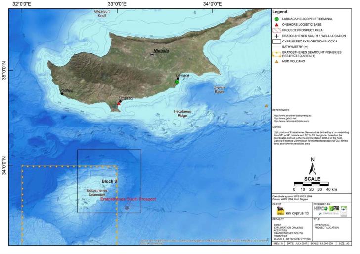 Πρόκειται για σημείο, νότια του υποθαλάσσιου όρους «Ερατοσθένης» και στο άκρο του λεγόμενου περι-Ερατοσθένιου δακτυλίου. Περίπου 50 χιλιόμετρα νοτιότερα, εντός του τεμαχίου 9, η ΕΝΙ έχει πραγματοποιήσει γεώτρηση το 2015 – στον στόχο «Ονισήφορος», χωρίς θετικό αποτέλεσμα.