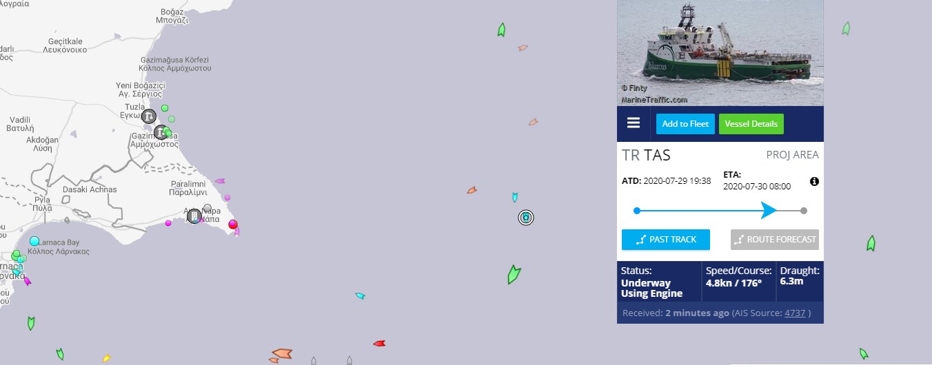Ανοιχτά της κατεχόμενης Αμμοχώστου βρίσκεται το τουρκικό ερευνητικό σκάφος «Barbaros», που απέπλευσε από το λιμάνι των Όλμων (Τασουτσού) αργά το απόγευμα της Τετάρτης. Κινείται με ταχύτητα 4,9 κόμβων εντός κυπριακής ΑΟΖ.