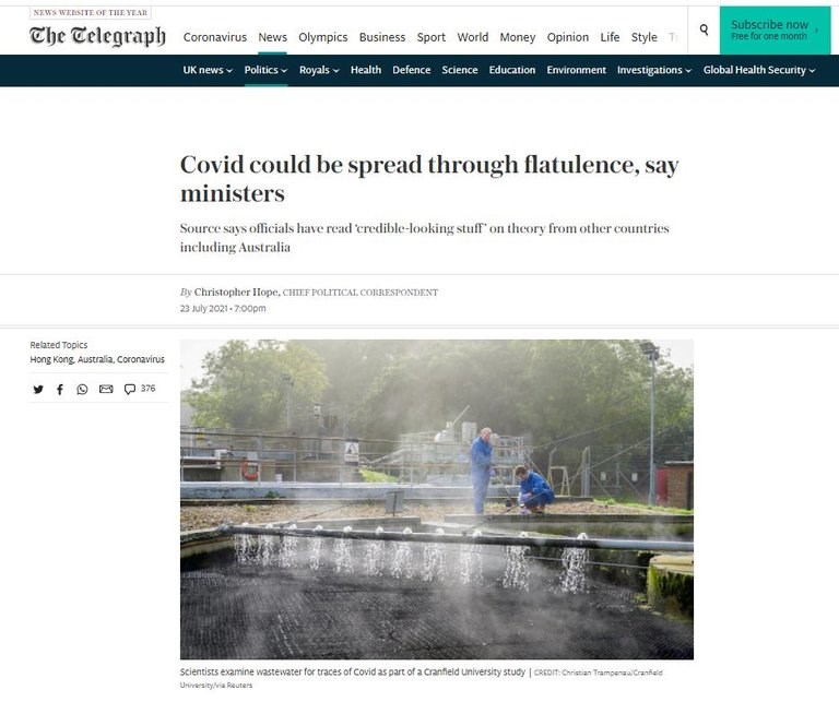 Σύμφωνα με άρθρο του πολιτικού συντάκτη της Daily Telegraph, Κρίστοφ Χοπ, υπουργοί της κυβέρνησης Τζόνσον μελετούν νέα στοιχεία που μπορεί να αποδεικνύουν πως ο κορονοϊός μεταδίδεται μέσω “αερίων” σε κλειστούς χώρους, όπως αποχωρητήρια.