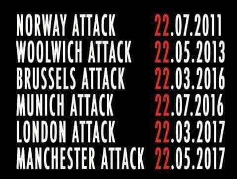 Σύμφωνα με τους χρήστες των μέσων κοινωνικής δικτύωσης, πολλές από τις επιθέσεις που έχουν στοιχίσει τη ζωή σε πολλούς ανθρώπους, έχουν ένα κοινό: έχουν συμβεί στις 22 του μήνα.