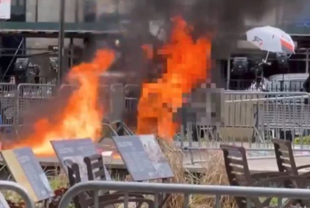 BREAKING: PRO HUMANITY & PRO PALESTINE PROTESTOR SETS HIMSELF ON FIRE IN NEW YORK OUTSIDE DONALD TRUMP’S TRIALpic.twitter.com/UrRxFHUG2l