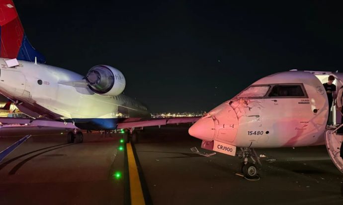 At least one was injured after two Delta regional jets collided at low speeds while taxiing Wednesday evening at LaGuardia 🇺🇸