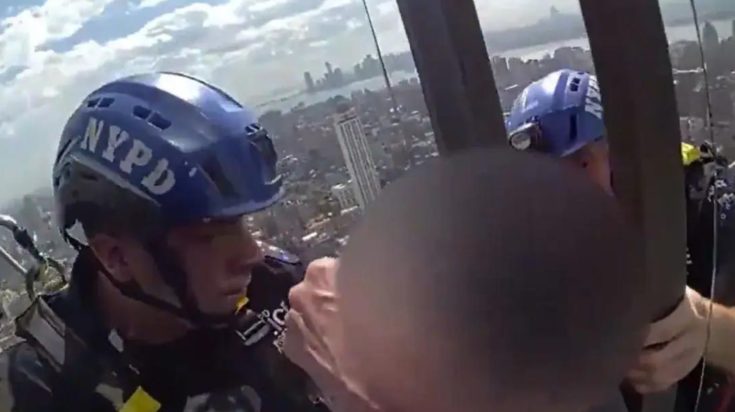 Εντυπωσιάζουν οι εικόνες από την επιχείρηση διάσωσης γυναίκας που κρεμόταν σε γωνία ουρανοξύστη 54 ορόφων, από αστυνομικούς της Νέας Υόρκης.