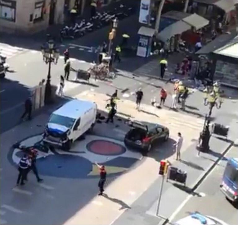 Ένα φορτηγάκι έπεσε πάνω σε πλήθος ανθρώπων στον πεζόδρομο Λα Ράμπλα, από τις δημοφιλέστερες τουριστικές περιοχές της Βαρκελώνης, με αποτέλεσμα πολλοί άνθρωποι να τραυματιστούν, γνωστοποίησε η αστυνομία της Καταλονίας (βορειανατολική Ισπανία).Η εφημερίδα El Pais γράφει, επικαλούμενη αστυνομικές πηγές, ότι ο οδηγός εγκατέλειψε το όχημα και διέφυγε με τα πόδια.Η αστυνομία επιβεβαίωσε ότι πρόκειται για τρομοκρατική επίθεση. Η περιοχή έχει αποκλειστεί από τις δυνάμεις επιβολής του νόμου. Οι αρχές συστήνουν στους πολίτες να μην προσεγγίζουν την Placa Catalunya. Οι κοντινοί σταθμοί του μετρό και του σιδηροδρόμου έκλεισαν.Επιπλέον, πέντε ασθενοφόρα και είκοσι περιπολικά έχουν σπεύσει στο σημείο, μετέδωσε ο ανταποκριτής του Γαλλικού Πρακτορείου.
