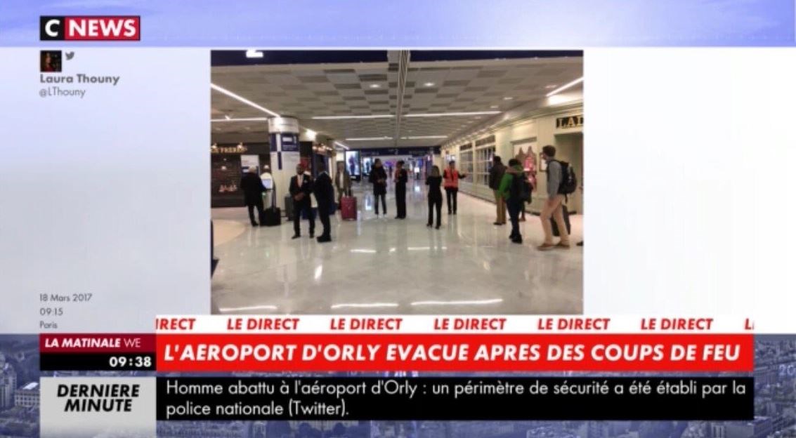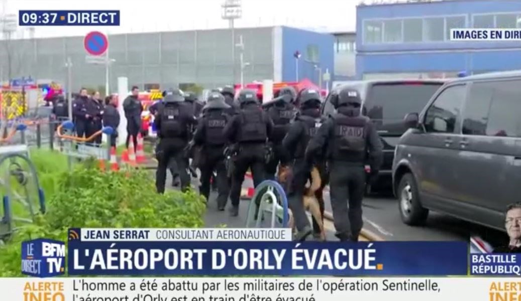 Νέες φωτογραφίες έρχονται στο φως της δημοσιότητας αναφορικά με την εκκένωση του αεροδρομίου του Orly, στο Παρίσι, μετά την απόπειρα ενός άντρα να αρπάξει το όπλο ενός στρατιώτη, ο οποίος έπεσε νεκρός από τα πυρά στρατιωτών.Σε εξέλιξη βρίσκεται η επιχείρηση της αστυνομίας και των πυροτεχνουργών που διερευνούν την περιοχή η οποία έχει αποκλειστεί.