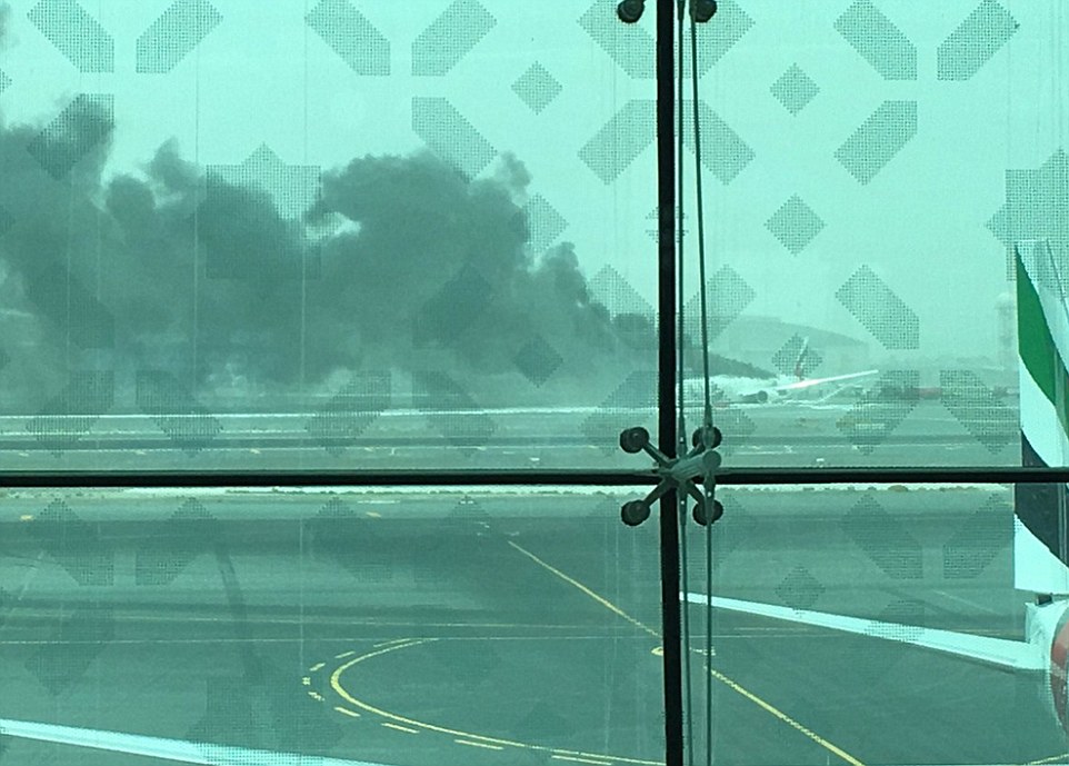 Συγκλονίζουν οι εικόνες από το αεροπλάνο της εταιρείας Emirates που τυλίχθηκε στις φλόγες έπειτα από αναγκαστική προσγείωση στο Διεθνές Αεροδρόμιο του Ντουμπάι.