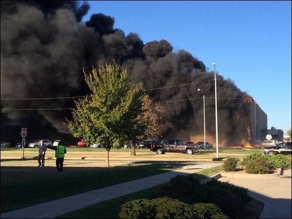 Πυκνός μαύρος καπνός βγαίνει από το σημείο όπου συνετρίβη το αεροσκάφος στο αεροδρόμιο του Κάνσας, Wichita.