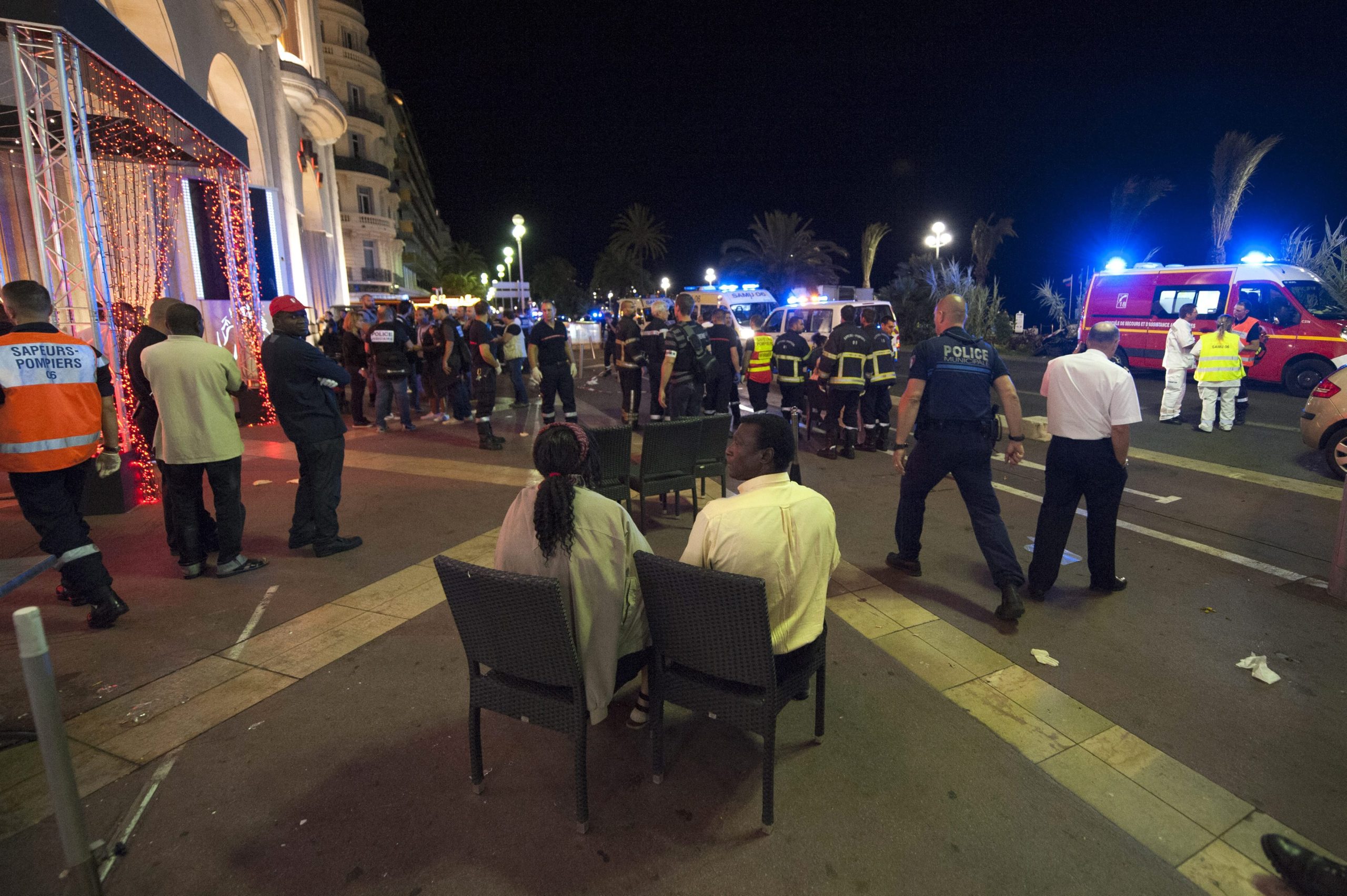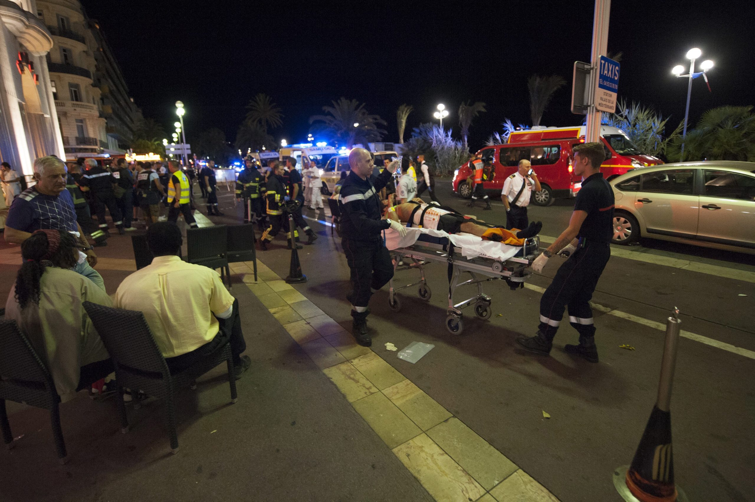 Γάλλοι διασώστες έχουν σπεύσει στο σημείο της τραγωδίας, όπου έχασαν τη ζωή τους 77 άνθρωποι και τραυματίστηκαν περισσότεροι από 100, με τους 40 από αυτούς να φέρουν σοβαρά τραύματα.
