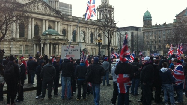 Επί έξι σχεδόν συνεχείς εβδομάδες κουκουλοφόροι συγκρούονταν με την αστυνομία στους δρόμους του ανατολικού Μπέλφαστ σε μια μάχη που συνεχίζεται για τους δεσμούς της επαρχίας με την Βρετανία. Οι διαδηλώσεις ξεκίνησαν όταν το δημοτικό συμβούλιο ψήφισε να αναρτάται η βρετανική σημαία μόνο ορισμένες ημέρες αντί καθημερινώς.