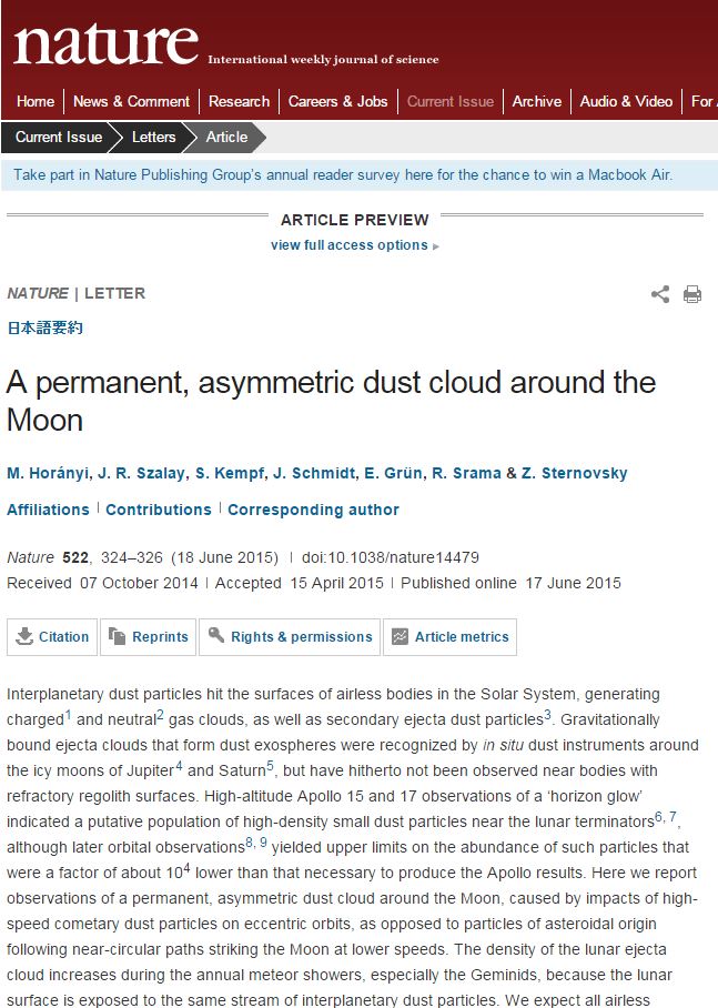 Οι ερευνητές, με επικεφαλής τον καθηγητή φυσικής του Πανεπιστημίου του Κολοράντο Μιχάλι Χοράνιι, που έκαναν τη σχετική δημοσίευση στο περιοδικό “Nature”, διευκρίνισαν ότι το εν λόγω νέφος είναι διαφορετικό από εκείνο που πιθανότατα παρατήρησαν οι αστροναύτες των διαστημικών αποστολών «Απόλλων» 15 και 17.
