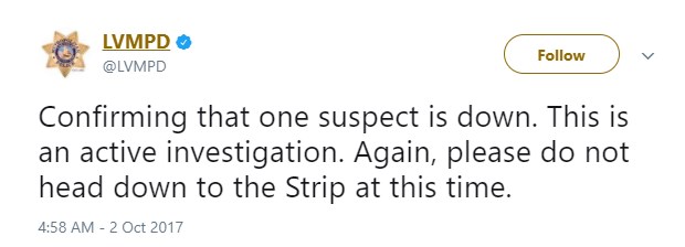 Η αστυνομία του Λας Βέγκας καλεί τους πολίτες να μην πλησιάζουν στην περιοχή του συμβάντος, ενώ τους απηύθυνε επίσης και έκκληση να μην μεταδίδουν ζωντανή εικόνα από τον τόπο της επίθεσης και να μην αναφέρουν τις θέσεις των αστυνομικών δυνάμεων, καθώς αυτό μπορεί να θέσει σε κίνδυνο τους ίδιους τους πολίτες και να εμποδίσει το έργο των αστυνομικών δυνάμεων και των σωστικών συνεργείων.