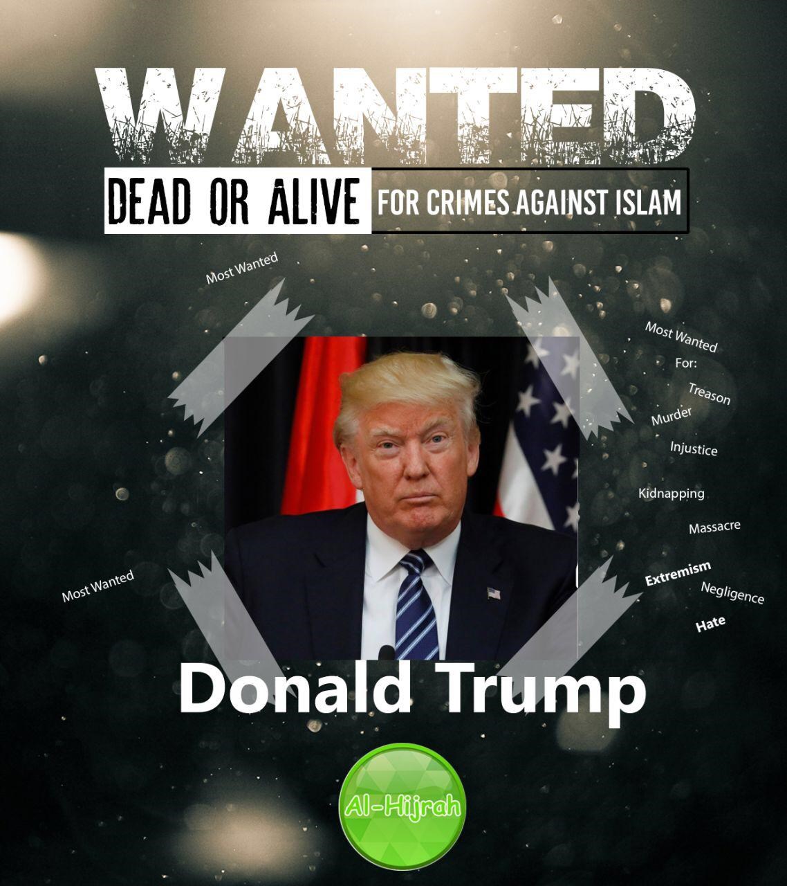 Σύμφωνα με το Newsweek η αφίσα δημιουργήθηκε την περασμένη Τρίτη και σε αυτή αναφέρεται πως η Αλ Κάιντα καταζητεί τον Τραμπ «νεκρό ή ζωντανό» αναφέροντας πως ο Αμερικανός Πρόεδρος έχει διαπράξει εγκλήματα κατά του Ισλάμ, τα οποία, μάλιστα, απαριθμεί.