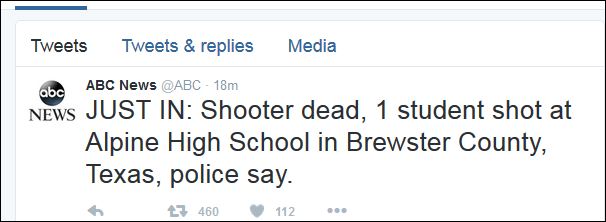 Όπως μετέδωσε στο Twitter το ABC ο ένοπλος που άνοιξε πυρ σε σχολείο του Τέξας είναι νεκρός. Από τα πυρά του έχει τραυματιστεί ένας μαθητής. Οι αστυνομικοί ερευνούν αν υπάρχει και δεύτερος ένοπλος στο κτίριο.