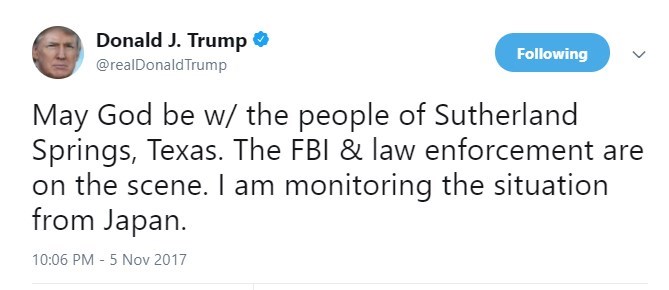 Ο Πρόεδρος των ΗΠΑ Ντόναλντ Τραμπ, που βρίσκεται σε περιοδεία στην Ασία, έκανε από την πλευρά του λόγο για ένα “τρομακτικό” μακελειό. Σύμφωνα με τον Λευκό Οίκο, ο Τραμπ συνομίλησε νωρίτερα με τον κυβερνήτη Άμποτ.