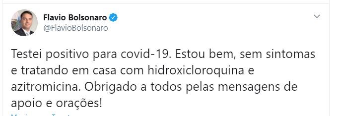 Ο Φλάβιο δεν έχει συμπτώματα της COVID-19 και βρίσκεται στο σπίτι του, υπογράμμισε ο εκπρόσωπος, προσθέτοντας ότι άρχισε να παίρνει χλωροκίνη και αζιθρομυκίνη ως μέρος της θεραπείας κατά του ιού.