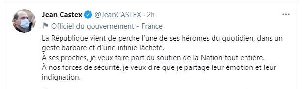 Στο αστυνομικό τμήμα έσπευσαν ο Γάλλος πρωθυπουργός Ζαν Καστέξ και ο υπουργός Εσωτερικών Ζεράρ Νταρμανέν. “Η Γαλλία έχασε μια από τις καθημερινές ηρωίδες της, σε μια βαρβαρική πράξη αστείρευτης δειλίας”, είπε ο Καστέξ.