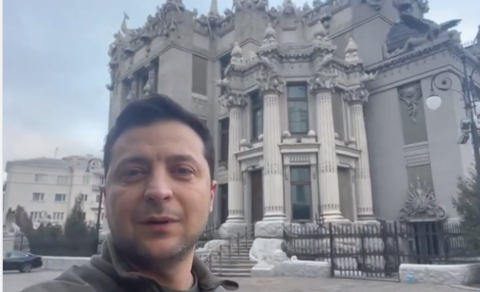 Ο Πρόεδρος της Ουκρανίας φαίνεται να γύρισε το βίντεο με το κινητό του στο κέντρο του Κιέβου σήμερα το πρωί. Το κλιπ είναι των 40 δευτερολέπτων.