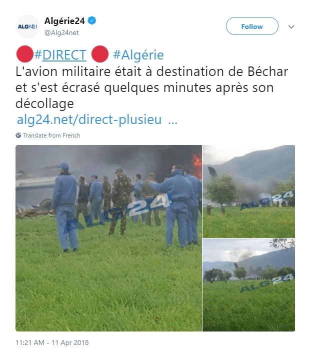 Το αεροσκάφος Hercules C-130 κατέπεσε στην ορεινή περιοχή που βρίσκεται στην επαρχία Οούμ αλ-Μπουαγκί, και κατευθυνόταν προς την Κωνσταντίνη.