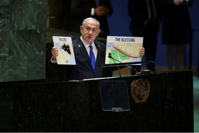 Για την Χαμάς και τον πόλεμο στην Γάζα, ο Ισραηλινός πρωθυπουργός είπε: “Μια συμφωνία εξομάλυνσης μεταξύ της Σαουδικής Αραβίας και του Ισραήλ φαινόταν πιο κοντά από ποτέ. Αλλά τότε ήρθε η κατάρα της 7ης Οκτωβρίου. Χιλιάδες υποστηριζόμενοι από το Ιράν τρομοκράτες της Χαμάς από τη Γάζα εισέβαλαν στο Ισραήλ με φορτηγά και μοτοσικλέτες. Και διέπραξαν αδιανόητες φρικαλεότητες”. Ο Νετανιάχου είπε, χωρίς να δώσει αποδείξεις, σύμφωνα με το CNN, ότι ο στρατός του Ισραήλ έχει σκοτώσει ή αιχμαλωτίσει περισσότερους από τους μισούς από τους περίπου 40.000 ένοπλους μαχητές της Χαμάς και ότι έχει καταστρέψει το 90% των ρουκετών της Χαμάς.