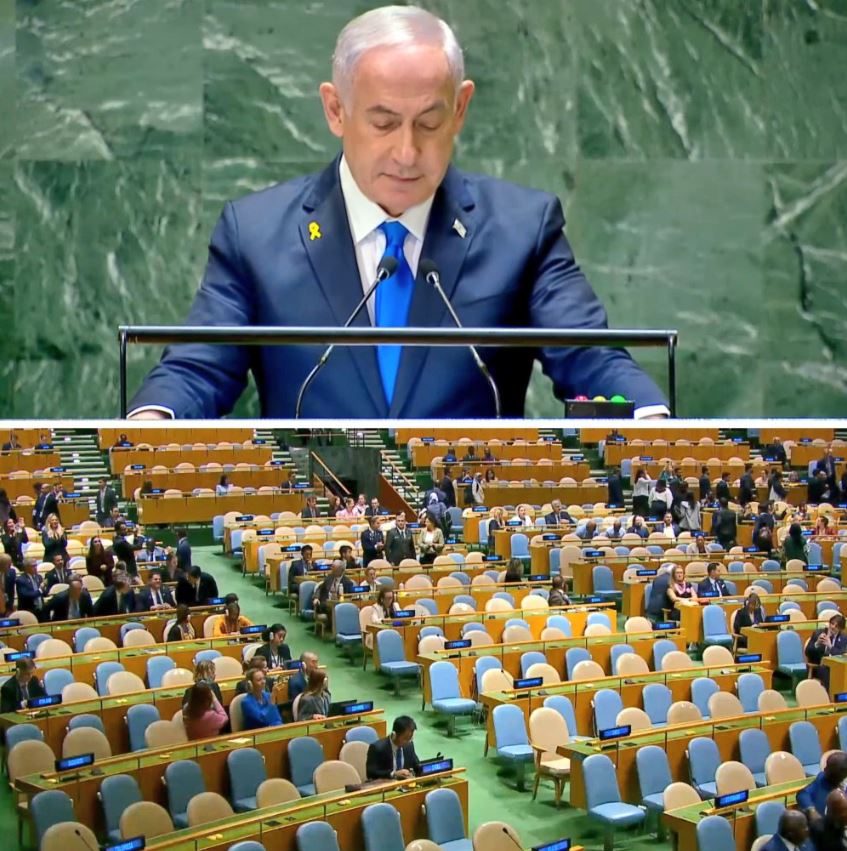 Την δική του εκδοχή για τον πόλεμο στην Μέση Ανατολή παρουσίασε στην Γενική Συνέλευση του ΟΗΕ ο Ισραηλινός πρωθυπουργός Μπενιαμίν Νετανιάχου, ωστόσο όταν ανέβηκε στο βήμα, οι αντιπρόσωπoι των χωρών σηκώθηκαν και αποχώρησαν ομαδικά.
