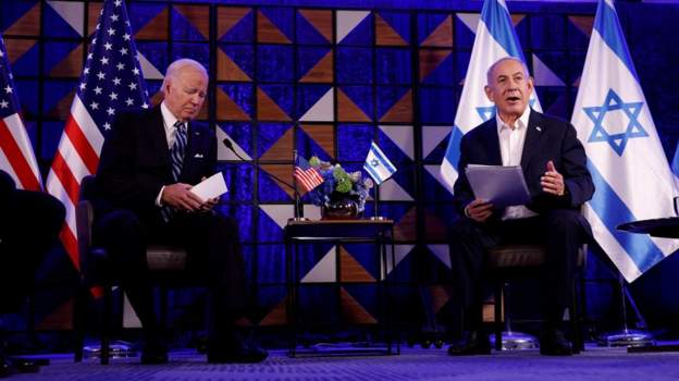 Νωρίτερα σήμερα, κατά τη συνάντησή του με τον Ισραηλινό πρωθυπουργό Μπενιαμίν Νετανιάχου στο Ισραήλ, ο Αμερικανός πρόεδρος Τζο Μπάιντεν δήλωσε ότι το χθεσινό πλήγμα στο νοσοκομείο της Γάζας πραγματοποιήθηκε «από την αντίπαλη πλευρά». Αργότερα ο Μπάιντεν διευκρίνισε ότι το σχόλιό του βασίζεται σε στοιχεία που του παρουσίασε το αμερικανικό Πεντάγωνο.