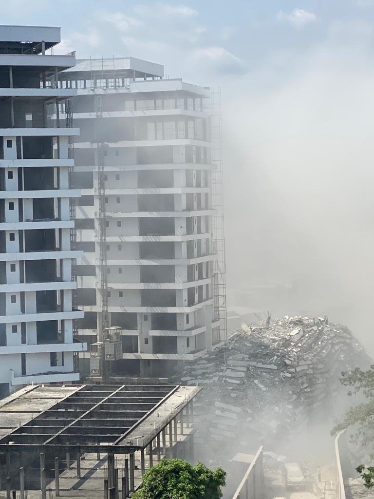 Ένας υπό κατασκευή ουρανοξύστης κατέρρευσε σήμερα στο Λάγος, την οικονομική πρωτεύουσα της Νιγηρίας, παγιδεύοντας στο εσωτερικό του αρκετούς ανθρώπους, σύμφωνα με οικοδόμους και υπεύθυνους των υπηρεσιών διάσωσης.