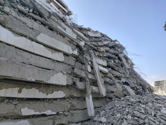 Ένας υπό κατασκευή ουρανοξύστης κατέρρευσε σήμερα στο Λάγος, την οικονομική πρωτεύουσα της Νιγηρίας, παγιδεύοντας στο εσωτερικό του αρκετούς ανθρώπους, σύμφωνα με οικοδόμους και υπεύθυνους των υπηρεσιών διάσωσης.