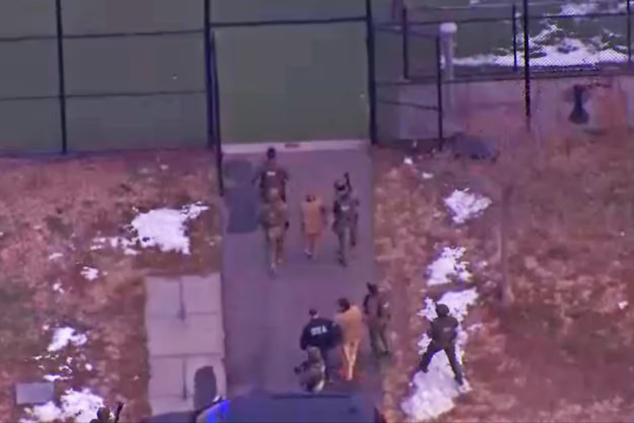 Ο Νικολάς Μαδούρο εμφανίστηκε με χειροπέδες καθώς απομακρυνόταν από το MDC στο Μπρούκλιν, όπου κρατούνταν τις τελευταίες δύο ημέρες, προκειμένου να επιβιβαστεί σε ελικόπτερο, φορώντας μπεζ ένδυμα και έντονα πορτοκαλί παπούτσια.