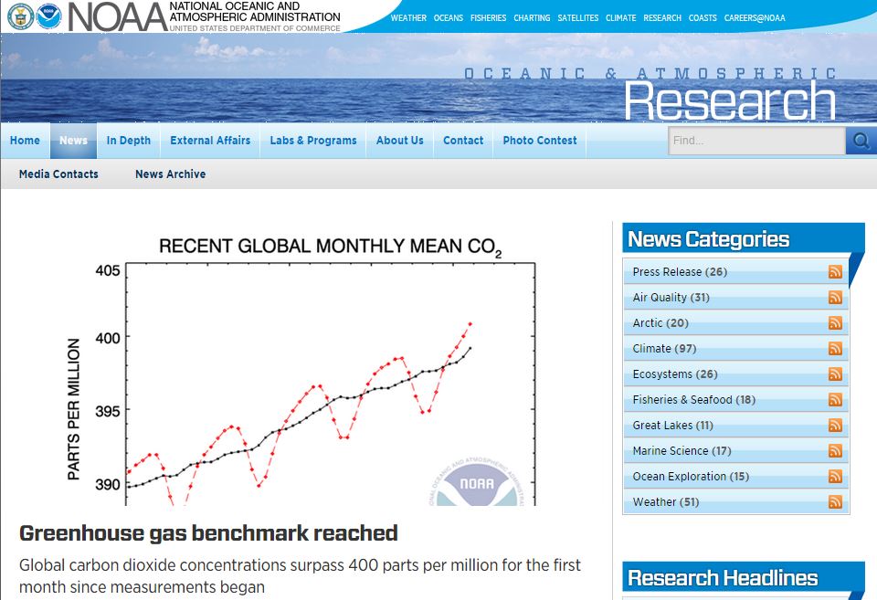 Το νέο αυτό ρεκόρ «καταδεικνύει ότι η καύση των ορυκτών καυσίμων από τον άνθρωπο οδήγησε σε μία αύξηση άνω των 120 ppm των συγκεντρώσεων του διοξειδίου του άνθρακα μετά την προβιομηχανική περίοδο, το 50% της οποίας σημειώθηκε από το 1980 και μετά», σημειώνει ο Πίτερ Τανς, επικεφαλής της επιστημονικής ομάδας της NOAA που καταγράφει τις συγκεντρώσεις των αερίων του θερμοκηπίου και τη μόλυνση της ατμόσφαιρας. «Δεν ήταν παρά θέμα χρόνου να υπερβούμε αυτό το όριο».