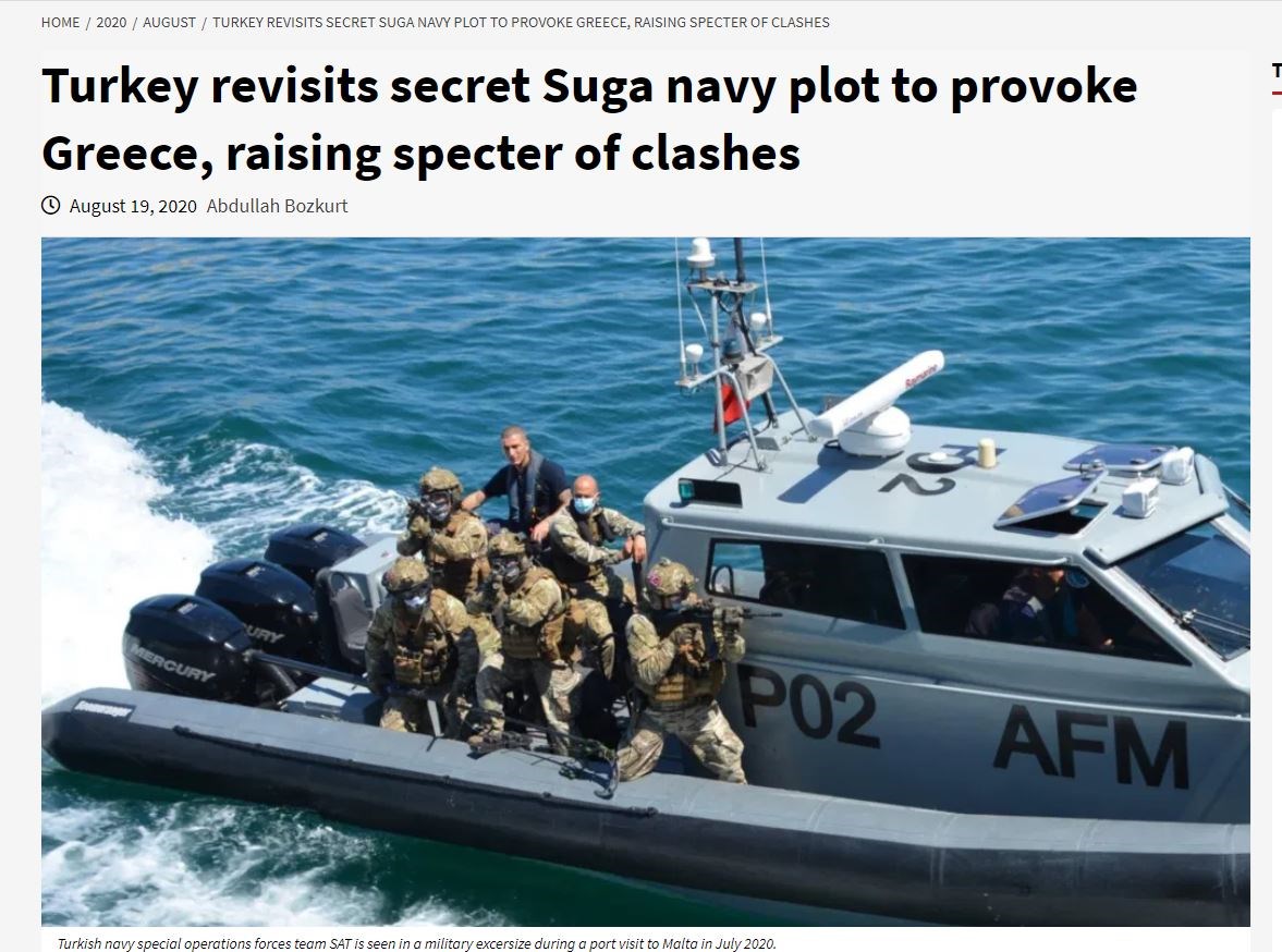 Σύμφωνα με το δημοσίευμα, υπό τον τίτλο “Η Τουρκία επανεξετάζει το μυστικό ναυτικό σχέδιο Suga για να προκαλέσει την Ελλάδα, αυξάνοντας το φάσμα των συγκρούσεων”, το Nordic Monitor αναφέρει συγκεκριμένα ότι “η Τουρκία επανεξετάζει το μυστικό αυτό σχέδιο που είχε οργανωθεί το 2003 ως επιχείρηση προβοκάτσιας προκειμένου να προκαλέσει ένταση με την Ελλάδα για εσωτερικά πολιτικά παιχνίδια”.
