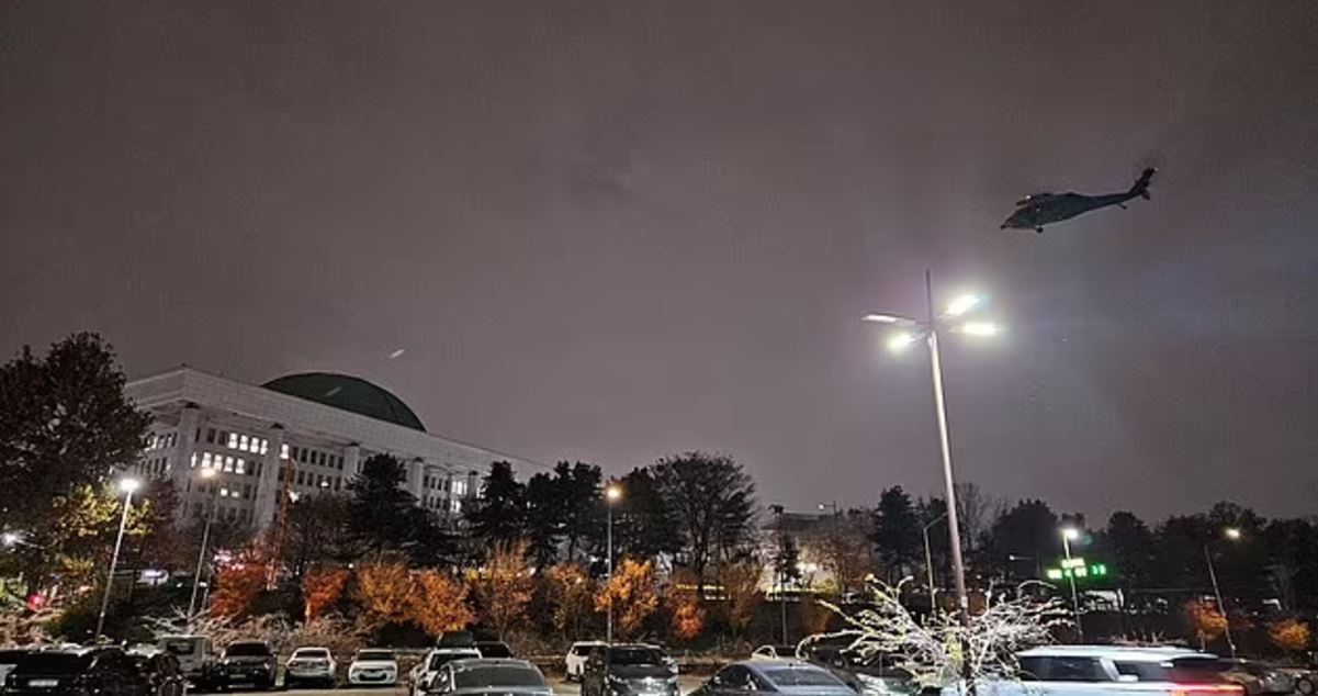 🚨🇰🇷After martial law was declared in South Korea, military convoys and helicopters patrolled Seoul, with forces on the streets.
