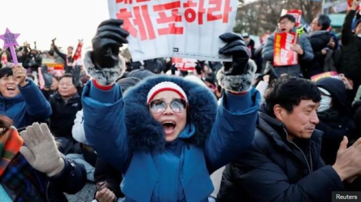 Χιλιάδες διαδηλωτές συγκεντρώθηκαν στη Σεούλ το Σάββατο, αψηφώντας το κρύο για να ζητήσουν την παραίτηση του Γιουν πριν από την ψηφοφορία, η οποία εγκρίθηκε από 204 βουλευτές με 85 να ψηφίζουν κατά.