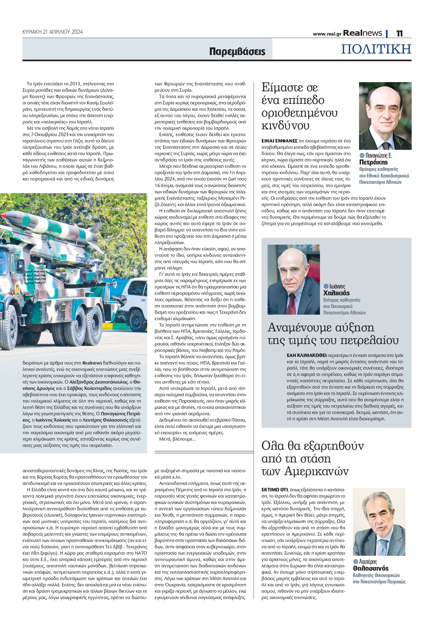 Εάν κλιμακωθεί περαιτέρω η ένταση ανάμεσα στο Ιράν και το Ισραήλ, παρά τη μικρής έντασης απάντηση του Ισραήλ, τότε θα υπάρξουν οικονομικές συνέπειες, ιδιαίτερα σε ό,τι αφορά το πετρέλαιο, καθώς το Ιράν παράγει σημαντικές ποσότητες πετρελαίου. Σε κάθε περίπτωση, όλα θα εξαρτηθούν από την ένταση και τη διάρκεια της σύρραξης ανάμεσα στο Ιράν και το Ισραήλ. Σε περίπτωση έντονης κλιμάκωσης της σύρραξης, αυτό που θα αναμένουμε είναι η αύξηση της τιμής του πετρελαίου στις διεθνείς αγορές, κατά συνέπεια και για τα νοικοκυριά. Εκτιμώ, ωστόσο, ότι αυτή η κρίση στη Μέση Ανατολή είναι διαχειρίσιμη.
