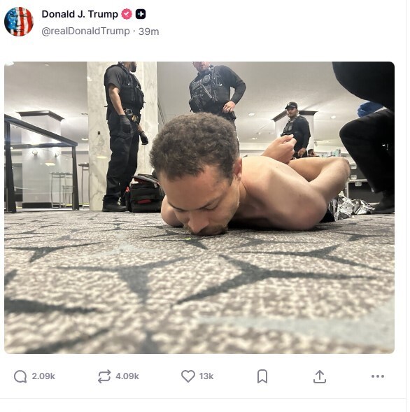 Αυτή η φωτογραφία του υπόπτου για το περιστατικό στο δείπνο των ανταποκριτών του Λευκού Οίκου δημοσιεύτηκε στον λογαριασμό Truth Social του Προέδρου Ντόναλντ Τραμπ το Σάββατο